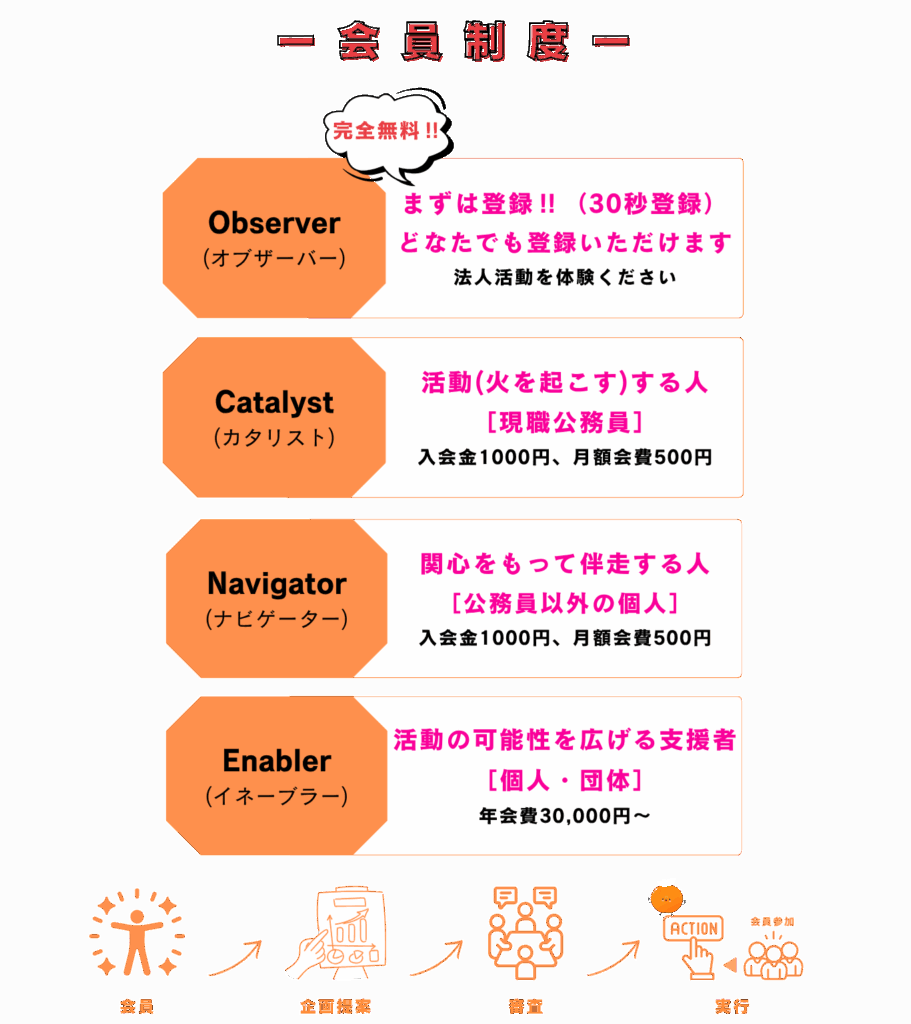 本ページでは、各種会員の役割や報酬、入会の流れについてご案内します。